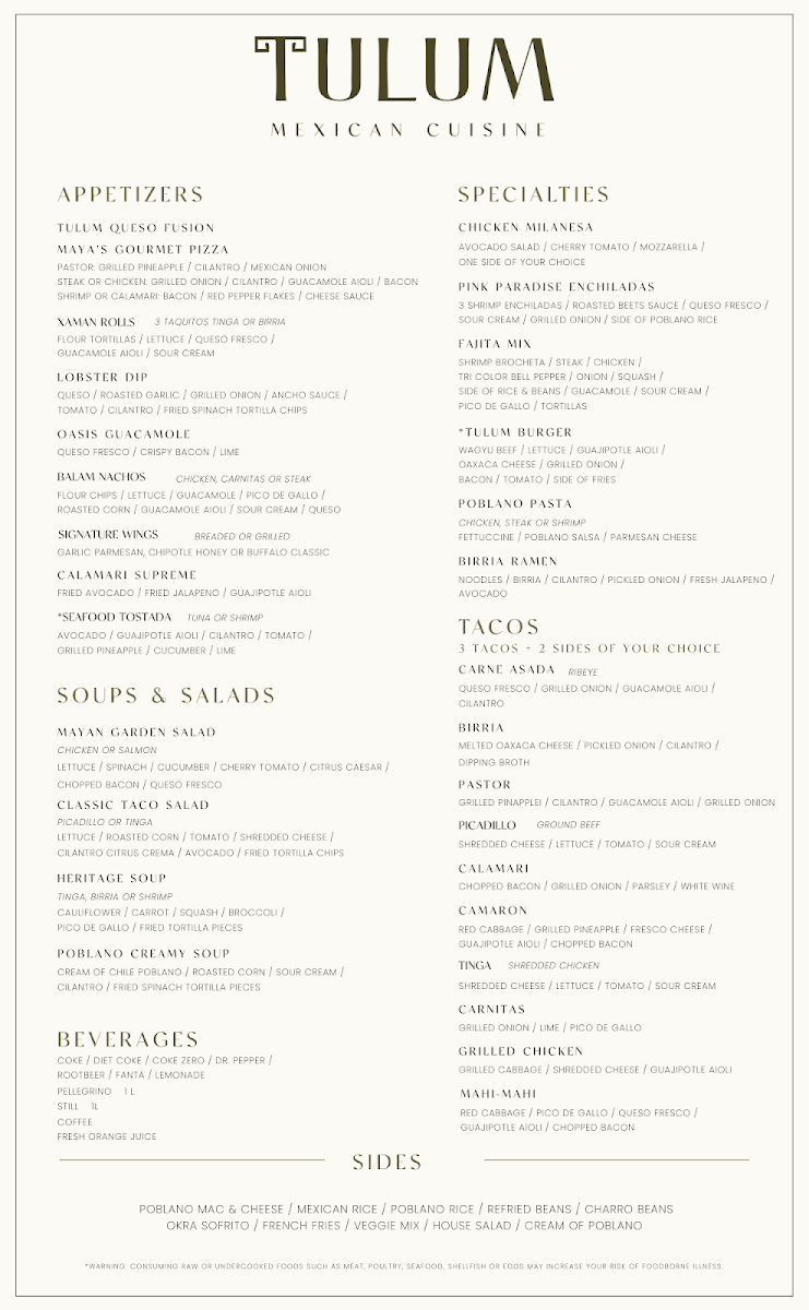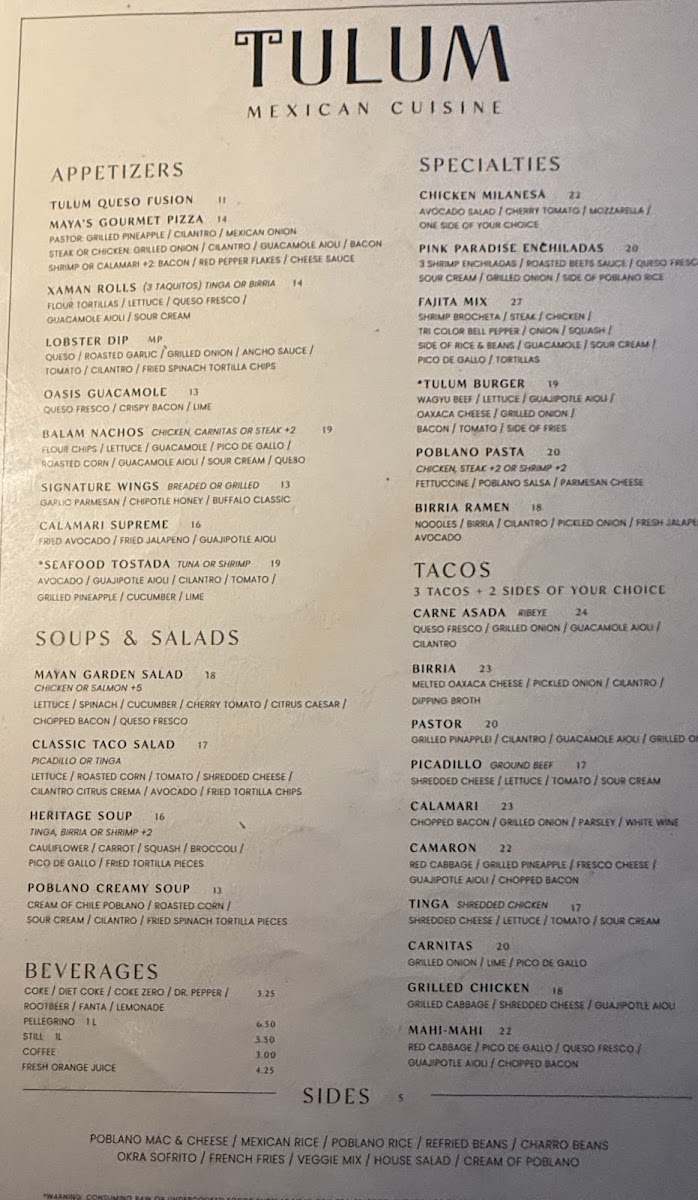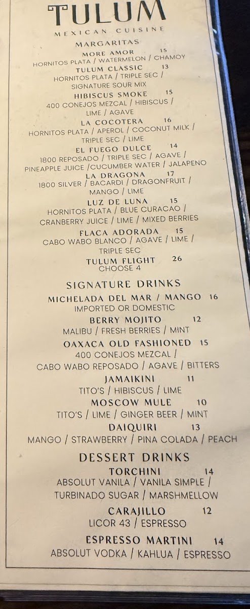 With an emphasis on quality and creativity, the dishes celebrate bold Mexican flavors while embodying a sophisticated twist. The attentive service, led by friendly staff like Alex, adds to the overall enjoyment, making Tulum the perfect choice for a romantic evening or a casual dinner with friends. Experience the magic of Tulum, where every meal is a delightful journey.